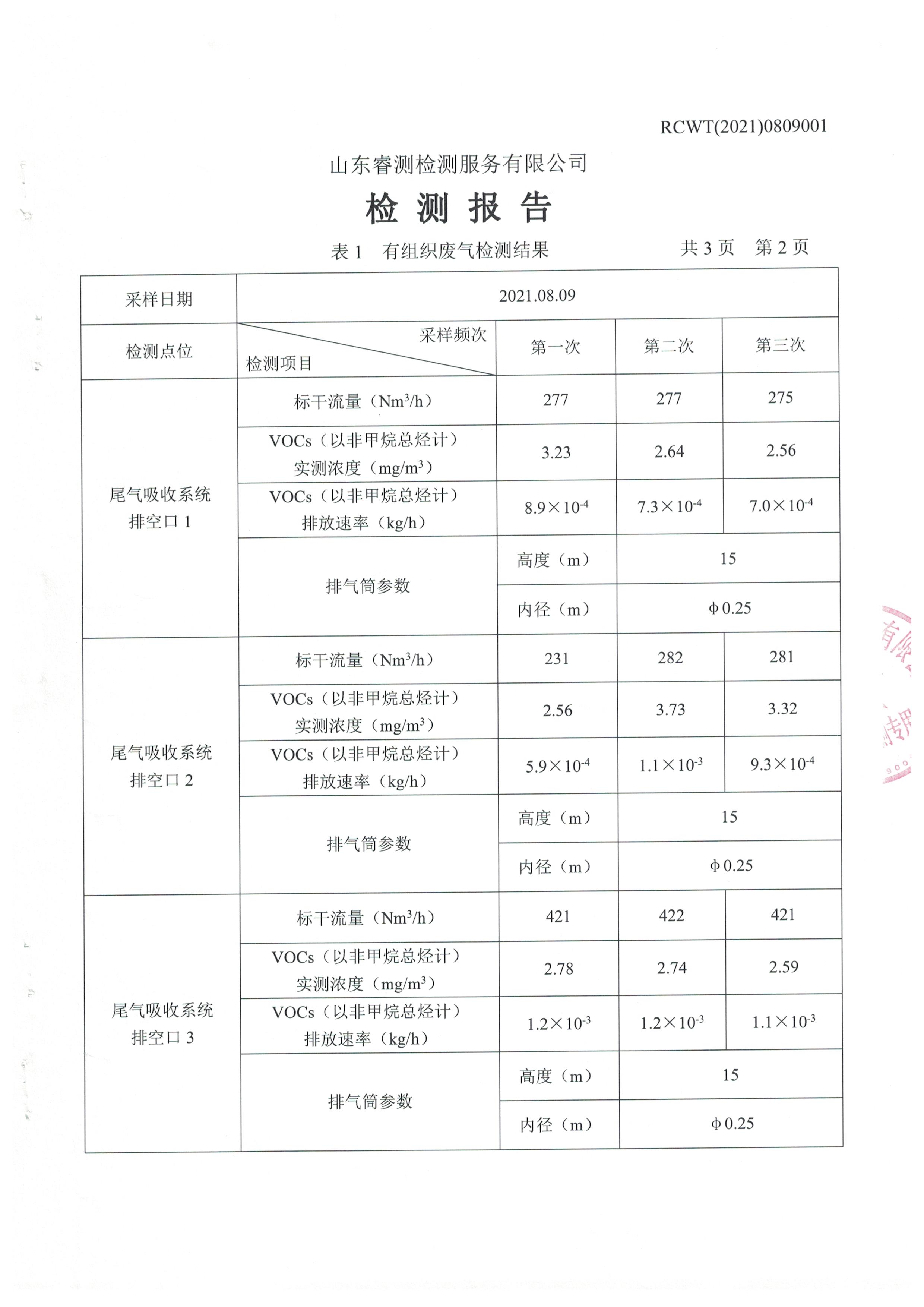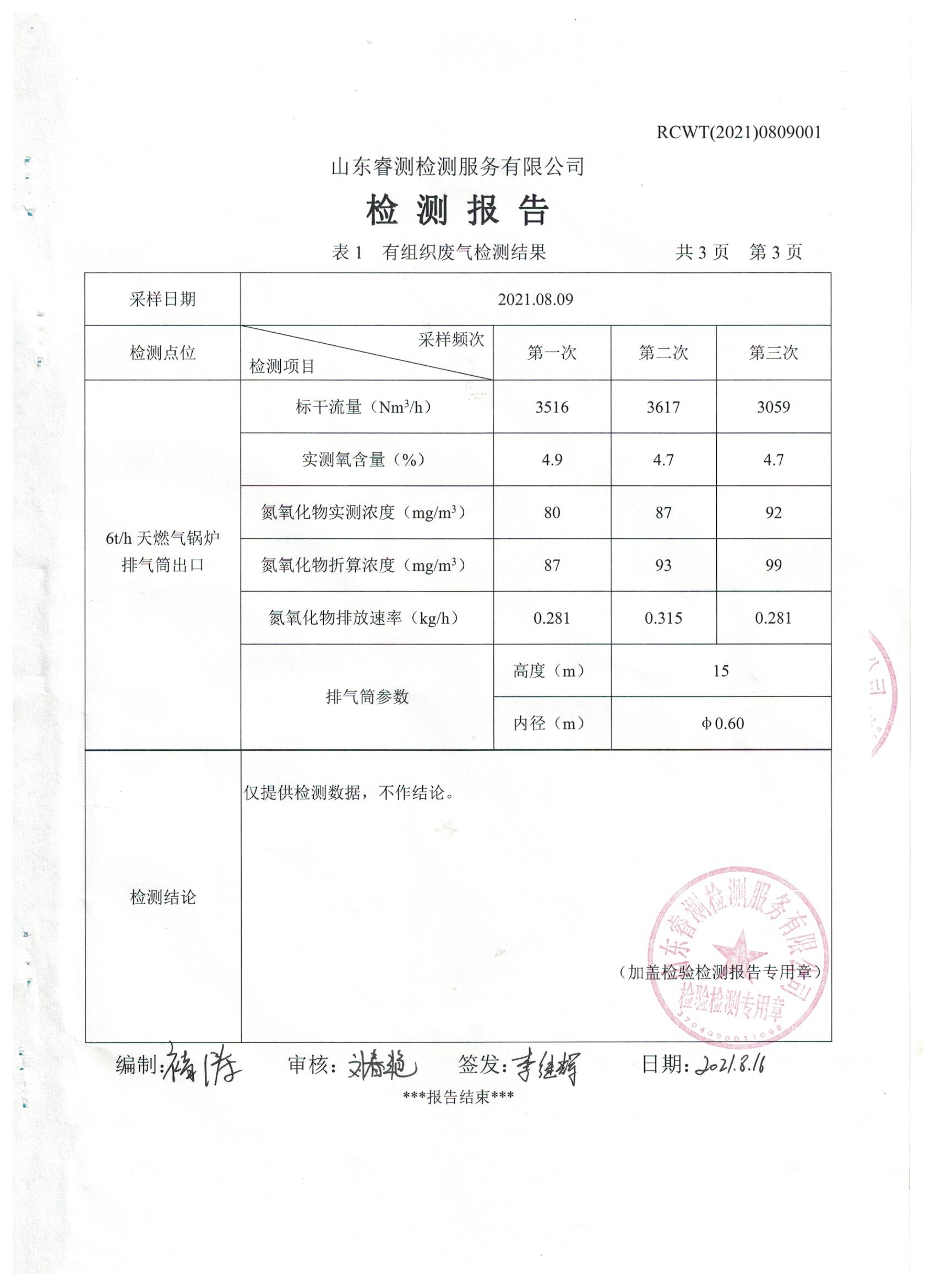 2021年8月份自行檢測(cè)報(bào)告
