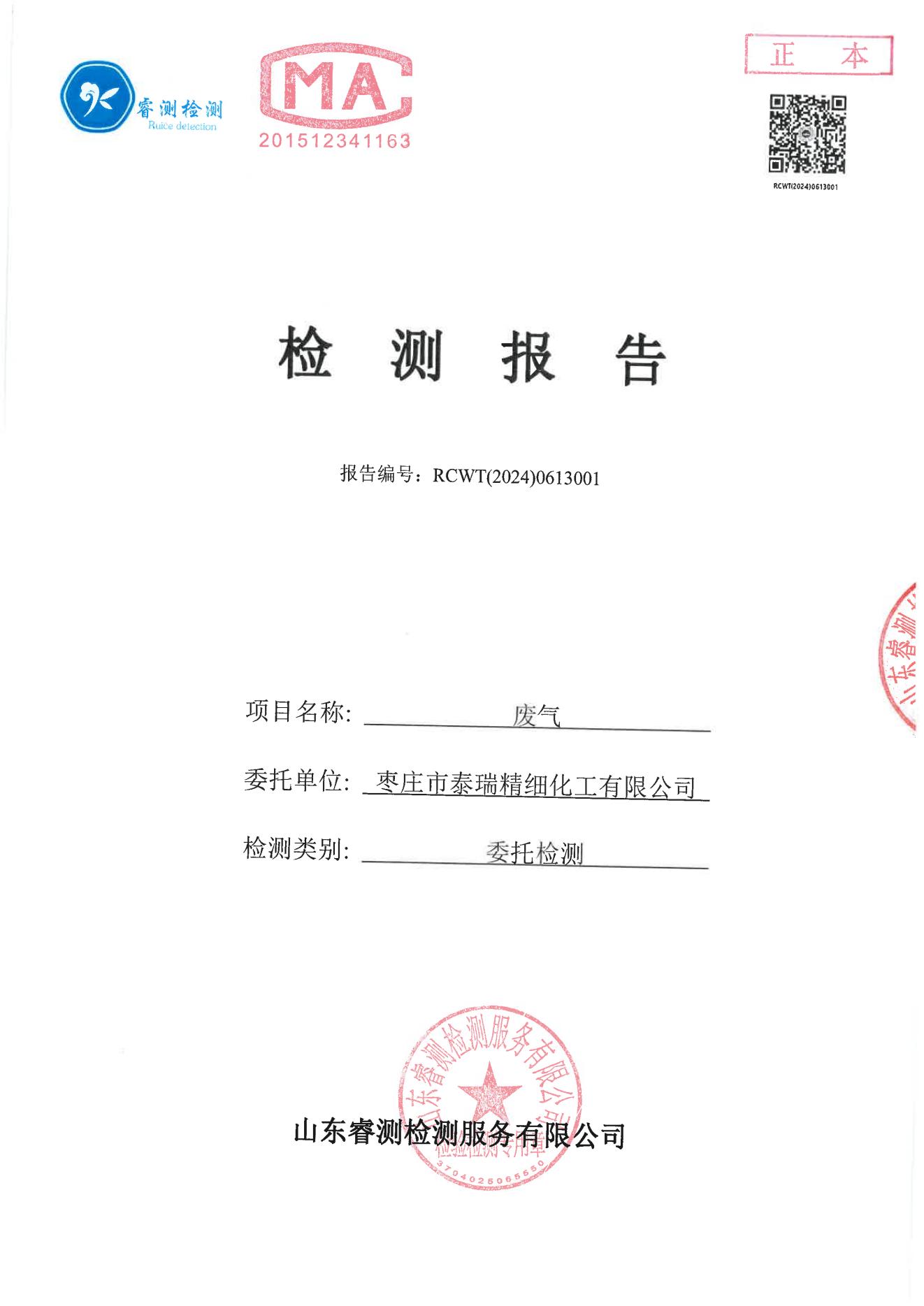 2024.6環(huán)境檢測報(bào)告泰瑞化工報(bào)告